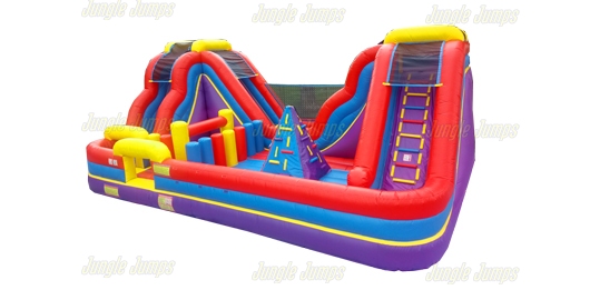 • This huge commercial-grade inflatable product has something for everyone. It is a great way to add thrills and activity to outdoor events, festivals, and parties all year long. Our giant inflatable interactive features two different slides, an inflatable obstacle course, and a climbing pyramid. Participants enter through an arched opening in the front of the unit. The entire self-contained assembly measures 18’x31’, providing a ton of play room for young participants. Climb, slide, slip, and laugh for hours of enjoyment.